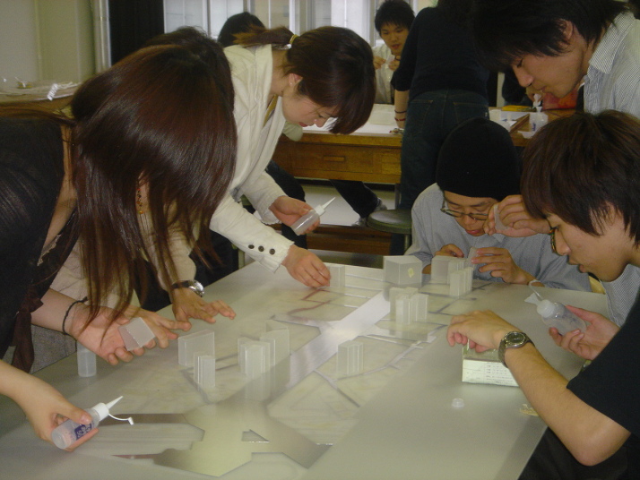 今回私たちは東京の渋谷区にある「表参道」の模型を作りました。「表参道」は数多くの有名建築家による建物が軒を連ねており、世界に誇れる今最も熱い建築スポットです。その中から「Dior」「TOD's」「PRADA」の三作品を取り上げ、発表しました。